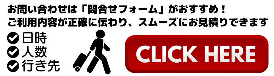 空港送迎、冠婚葬祭、機材運搬、観光目的、長期契約、一時利用など、さまざまなシーンでご利用いただけます。今回ご紹介した用途以外にも、私たちのサービスは様々なご要望にお応えすることが可能ですので、先ずは、どんなことでも、お気軽にお問い合わせください。見積もりを出すのに、不明な点や記入漏れがある時以外はこちらからお電話しません、基本メールでのやり取りですのでご安心ください。